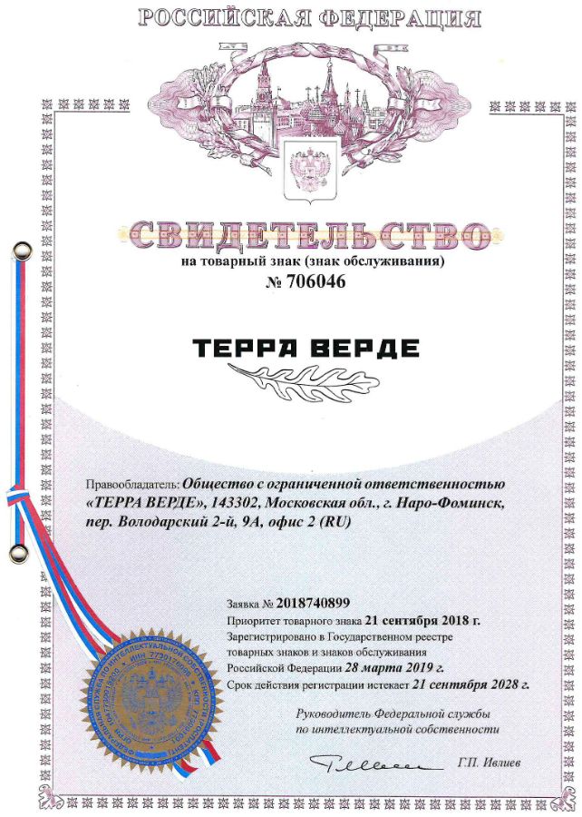 Наш бренд "Терра Верде" - бренд, зарегистрированный на территории Российской Федерации. Использование названия или логотипа без согласия правообладателя противозаконно. |